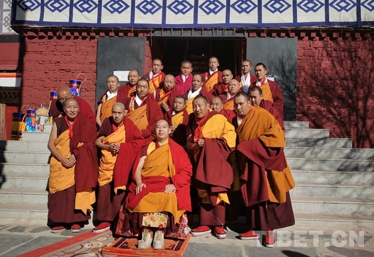 圖為班禪與長(zhǎng)美堅(jiān)寺僧眾合影留念 攝影:王淑