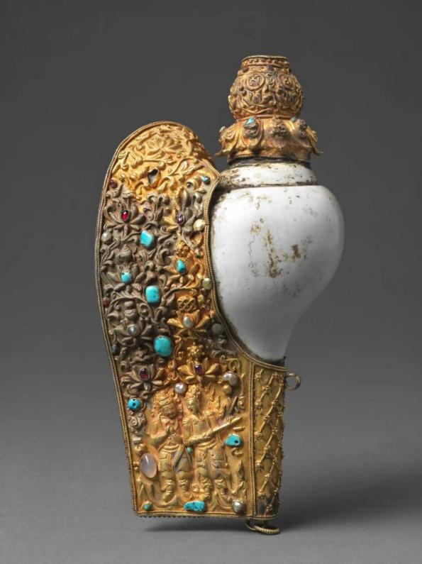 圖為公元18世紀銀質嵌松石瓔珞紋尊勝瓶