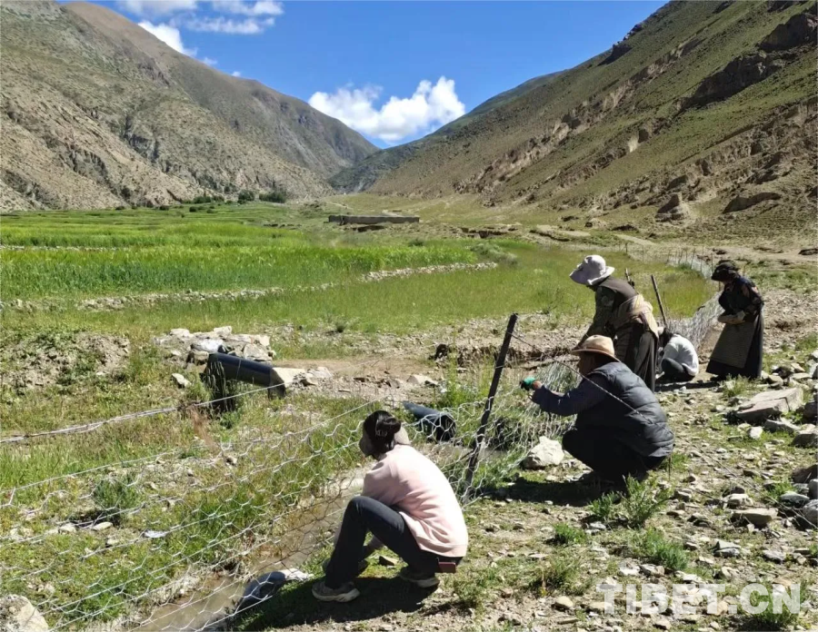 圖為駐村工作隊組織群眾加固當(dāng)?shù)夭輬龇雷o網(wǎng)