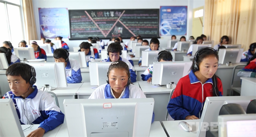 圖為昌都市洛隆縣學(xué)校配置的計(jì)算機(jī)教室