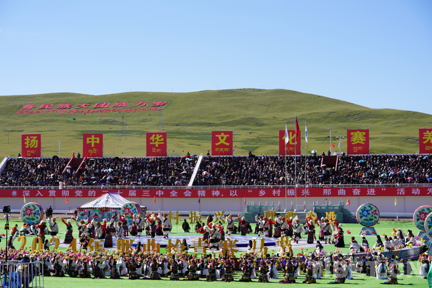 圖為2024年那曲恰青賽馬節(jié)暨第三屆“鄉(xiāng)村振興那曲奮進(jìn)”活動(dòng)開幕式現(xiàn)場(chǎng) 攝影:王淑