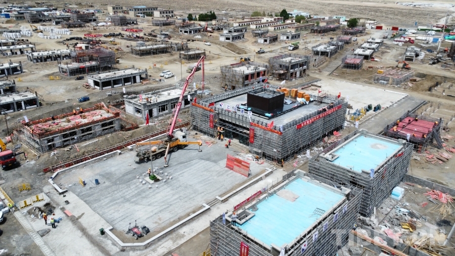 圖為森嘎村災(zāi)后重建現(xiàn)場(chǎng)
