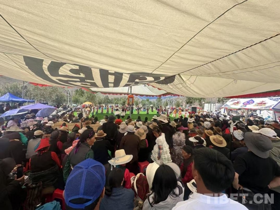 圖為日喀則南木林縣非遺林公園內的湘巴藏戲展演吸引了大批觀眾駐足觀看