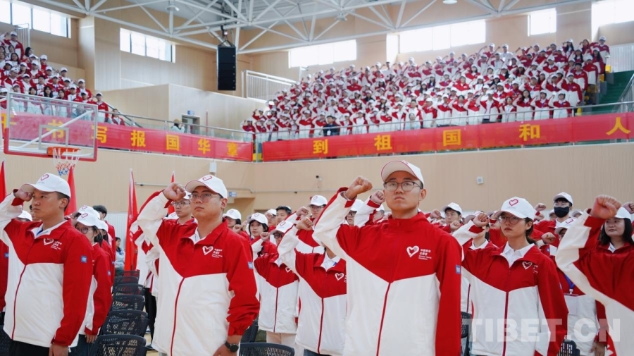 中國西藏網(wǎng)訊 7月29日,激昂的旋律回蕩在拉薩,一場(chǎng)莊嚴(yán)的出征儀式在此舉行。來自北京、河北、四川、湖南、上海、西藏等全國22個(gè)省(自治區(qū)、直轄市)的1200余名大學(xué)生志愿服務(wù)西部計(jì)劃服務(wù)西藏專項(xiàng)志愿者整裝集結(jié),滿懷壯志,即將奔赴西藏自治區(qū)7市(地)基層一線,開啟為期1至3年的志愿服務(wù)新征程。其中,研究生支教團(tuán)成員達(dá)124人。