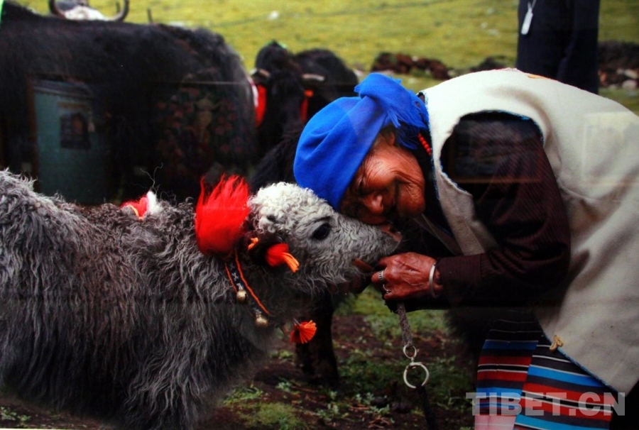 圖為“雪域古城·圣地拉薩”第七屆書畫攝影藝術展攝影作品《奶奶與牛犢》 攝影:溫都蘇 翻拍:趙釗
