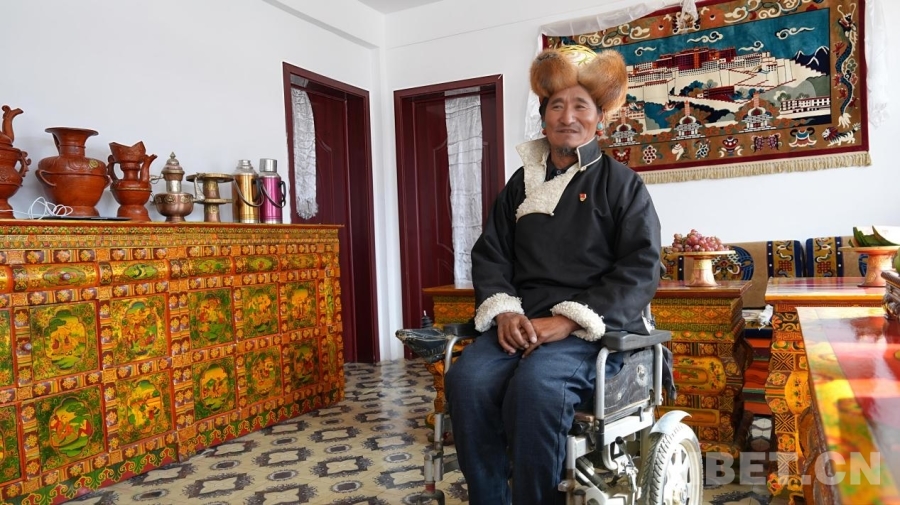 達桑曾是措布村的干部,十年前因干農(nóng)活不慎摔倒導致行動不便,需要依靠輪椅出行,但他作為一名共產(chǎn)黨員的初心始終未改?!拔液芟霝榇蠹易鳇c事,但現(xiàn)在身體情況不允許了。”坐在輪椅上的達桑語氣中帶著遺憾。在災(zāi)后重建期間,他每天都堅持到工地,默默關(guān)注施工的每個細節(jié)?!拔译m然幫不上忙,但要親眼看著房子建起來。工人們?nèi)找冠s工,用的材料都是頂好的,他們真的太辛苦了。”這份“全程見證”的堅守,正是這位老黨員表達責任與關(guān)切的深情方式。