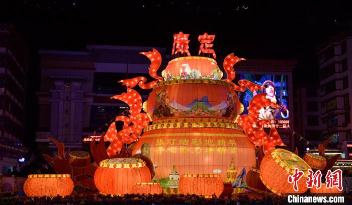 康定街頭大型彩燈組點綴迎新春。劉忠俊 攝