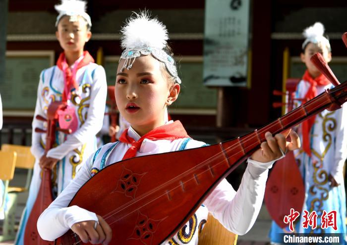 學(xué)生在進(jìn)行回族土琵琶彈唱?!“苍?攝