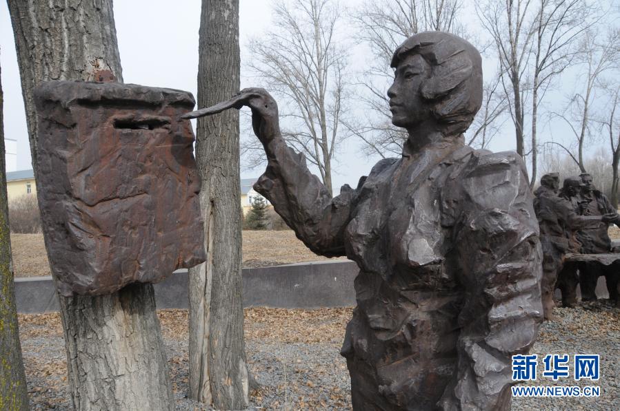 在原子城紀(jì)念園里的這座雕塑,生動(dòng)再現(xiàn)了那個(gè)火熱年代中,一個(gè)真實(shí)而感人的故事。