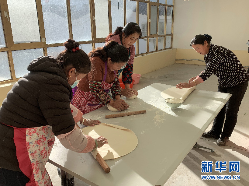 紅柳村村民在一起搟面,為“幸福家宴”準備主食(資料照片)。新華社記者 王浡 攝