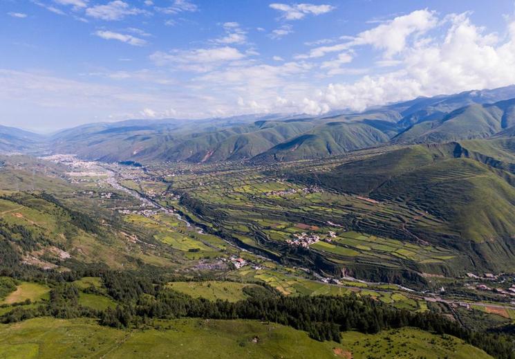 在道孚縣鮮水鎮(zhèn),俯瞰格西河谷地帶風光(7月25日攝,無人機照片)。新華社記者 江宏景 攝