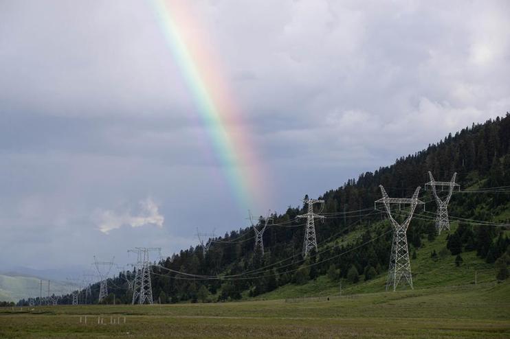 7月25日,在道孚縣龍燈草原,雨后出現(xiàn)一道彩虹。新華社記者 江宏景 攝