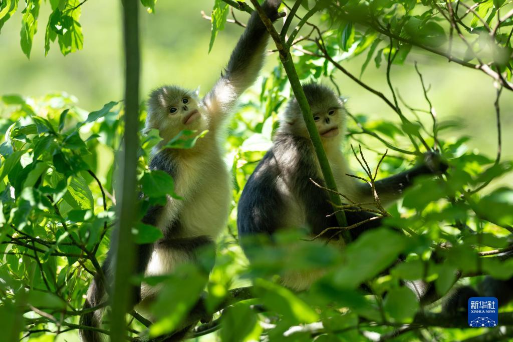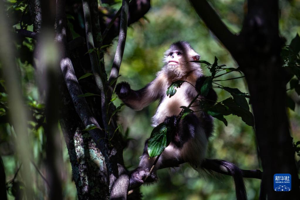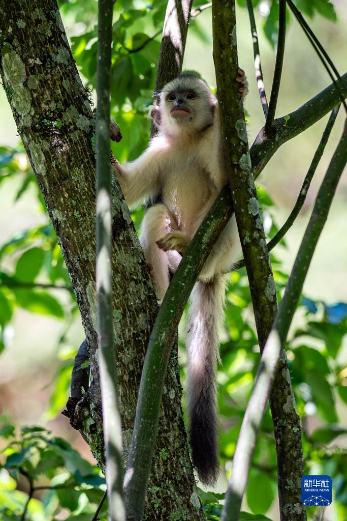云南迪慶藏族自治州香格里拉滇金絲猴國家公園里的滇金絲猴(7月19日攝)。新華社記者 江文耀 攝