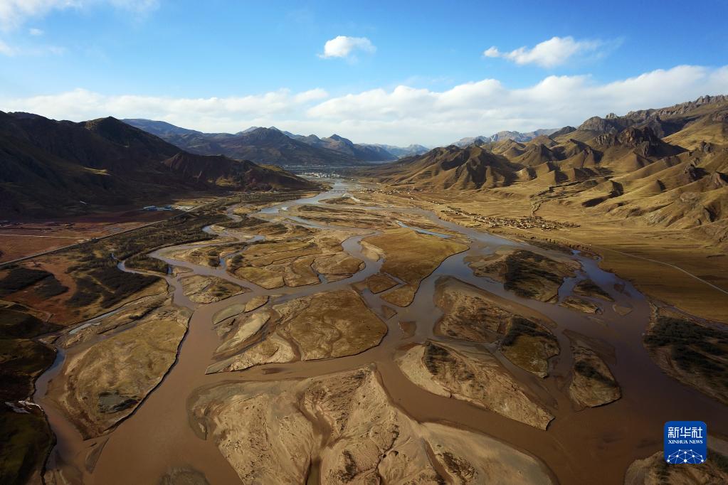 這是2022年3月20日在青海省玉樹(shù)藏族自治州囊謙縣境內(nèi)拍攝的瀾滄江上源扎曲河(無(wú)人機(jī)照片)。新華社記者 范培珅 攝