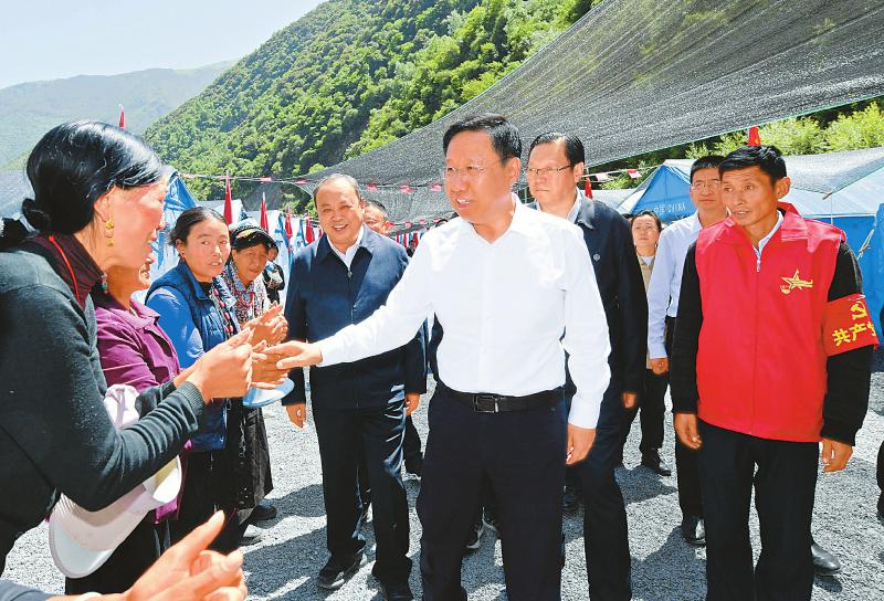 “6·10”馬爾康地震發(fā)生后,習(xí)近平總書記高度重視、作出重要指示,對全力組織搶險救災(zāi)、嚴(yán)防次生災(zāi)害、恢復(fù)生產(chǎn)生活秩序、做好災(zāi)后恢復(fù)重建工作等提出明確要求。王曉暉來到地處震中區(qū)域的草登鄉(xiāng)斯拉爾底村一組,轉(zhuǎn)達(dá)總書記的牽掛和關(guān)懷,實地察看房屋受損、道路損毀、山體滑坡和次生災(zāi)害防治情況,對前期工作取得的階段性成效給予肯定。他說,當(dāng)前正值汛期,災(zāi)區(qū)極易發(fā)生山洪、泥石流、滑坡等次生災(zāi)害。要提前做好各種應(yīng)急準(zhǔn)備,加強監(jiān)測預(yù)警和隱患點綜合防治,嚴(yán)防出現(xiàn)新的人員傷亡和財產(chǎn)損失。離開村子,王曉暉前往距村原址22公里的集中過渡安置點,看望慰問受災(zāi)群眾,鼓勵大家堅定信心,在黨委政府幫助下,用勤勞雙手重建美好家園。在安置點,他向辛勤付出的基層黨員干部、公安干警、消防、民兵、醫(yī)務(wù)人員和志愿者表示問候和感謝,強調(diào)要繼續(xù)用心用情做好受災(zāi)群眾服務(wù)保障工作,確保大家有飯吃、有衣穿、有臨時安全住處、有干凈水喝、有醫(yī)療服務(wù)。各級黨組織和黨員干部要充分發(fā)揮戰(zhàn)斗堡壘作用和先鋒模范作用,加快推進(jìn)災(zāi)后恢復(fù)重建,盡快恢復(fù)正常生產(chǎn)生活秩序,讓黨旗在重建一線高高飄揚。