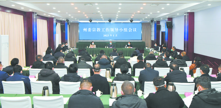 會(huì)議要求,要深入學(xué)習(xí)宣傳貫徹黨的二十大精神,堅(jiān)持把學(xué)習(xí)黨的二十大精神與深入學(xué)習(xí)習(xí)近平總書記關(guān)于宗教工作的重要論述結(jié)合起來,與學(xué)習(xí)黨的宗教工作理論和方針政策貫通起來,與學(xué)習(xí)貫徹省委、州委全會(huì)精神結(jié)合起來,與喜迎建州70周年慶?;顒?dòng)結(jié)合起來,引導(dǎo)全州宗教界人士和廣大信教群眾把思想和行動(dòng)統(tǒng)一到黨的二十大精神上來,把智慧和力量凝聚到實(shí)現(xiàn)黨的二十大確定的各項(xiàng)目標(biāo)任務(wù)上來,為促進(jìn)民族團(tuán)結(jié)進(jìn)步、維護(hù)社會(huì)大局穩(wěn)定、實(shí)現(xiàn)阿壩長(zhǎng)治久安作出積極貢獻(xiàn)。要深入推進(jìn)我國宗教中國化,依托四川藏語佛學(xué)院阿壩分院等平臺(tái),切實(shí)加大各級(jí)干部宗教工作方針政策、法律法規(guī)制度的培訓(xùn)力度,持續(xù)深化“聯(lián)寺聯(lián)僧”群眾工作,堅(jiān)持好黨員干部與宗教界代表人士聯(lián)誼交友制度,引導(dǎo)宗教界鑄牢中華民族共同體意識(shí),持續(xù)深化宗教界“愛黨愛國愛社會(huì)主義”主題教育,教育引導(dǎo)廣大僧尼感黨恩聽黨話跟黨走、愛國愛教愛家鄉(xiāng)。要防范化解宗教領(lǐng)域風(fēng)險(xiǎn)隱患,堅(jiān)持穩(wěn)字當(dāng)頭、穩(wěn)中求進(jìn),健全黨委領(lǐng)導(dǎo)、政府主導(dǎo)、干僧一體的管理體系,全面加強(qiáng)“一寺一策”依法規(guī)范管理,深入排查治理宗教領(lǐng)域亂點(diǎn)亂象,積極推進(jìn)宗教與社會(huì)主義社會(huì)相適應(yīng);堅(jiān)持中華文化自信自立,持續(xù)開展互聯(lián)網(wǎng)涉宗教問題專項(xiàng)治理行動(dòng),強(qiáng)化網(wǎng)絡(luò)“大 V ”教育培訓(xùn)管理,牢牢掌握網(wǎng)絡(luò)輿論主動(dòng)權(quán)。要加快推進(jìn)宗教工作法治建設(shè),高舉法治旗幟,堅(jiān)持“統(tǒng)戰(zhàn)+法治”思維和方式,組織雙語宣講力量,用群眾聽得懂、喜歡聽、能接受的語言,與時(shí)俱進(jìn)加強(qiáng)法律政策宣講,教育引導(dǎo)宗教界牢固樹立“國大于教、國法大于教規(guī)、教民首先是公民”的意識(shí),確保宗教健康傳承發(fā)展。各級(jí)黨組織要認(rèn)真貫徹《宗教事務(wù)條例》等法規(guī)政策,不斷健全宗教工作依法決策機(jī)制,嚴(yán)格執(zhí)行重大行政決策程序,切實(shí)提高運(yùn)用法治思維和法治方式處理宗教問題的能力和水平。各級(jí)黨員干部特別是領(lǐng)導(dǎo)干部要堅(jiān)定政治立場(chǎng),堅(jiān)定理想信念,嚴(yán)守黨的政治紀(jì)律、工作紀(jì)律和保密紀(jì)律,堅(jiān)持忠誠干凈擔(dān)當(dāng),持之以恒抓好各項(xiàng)工作落地落實(shí)。