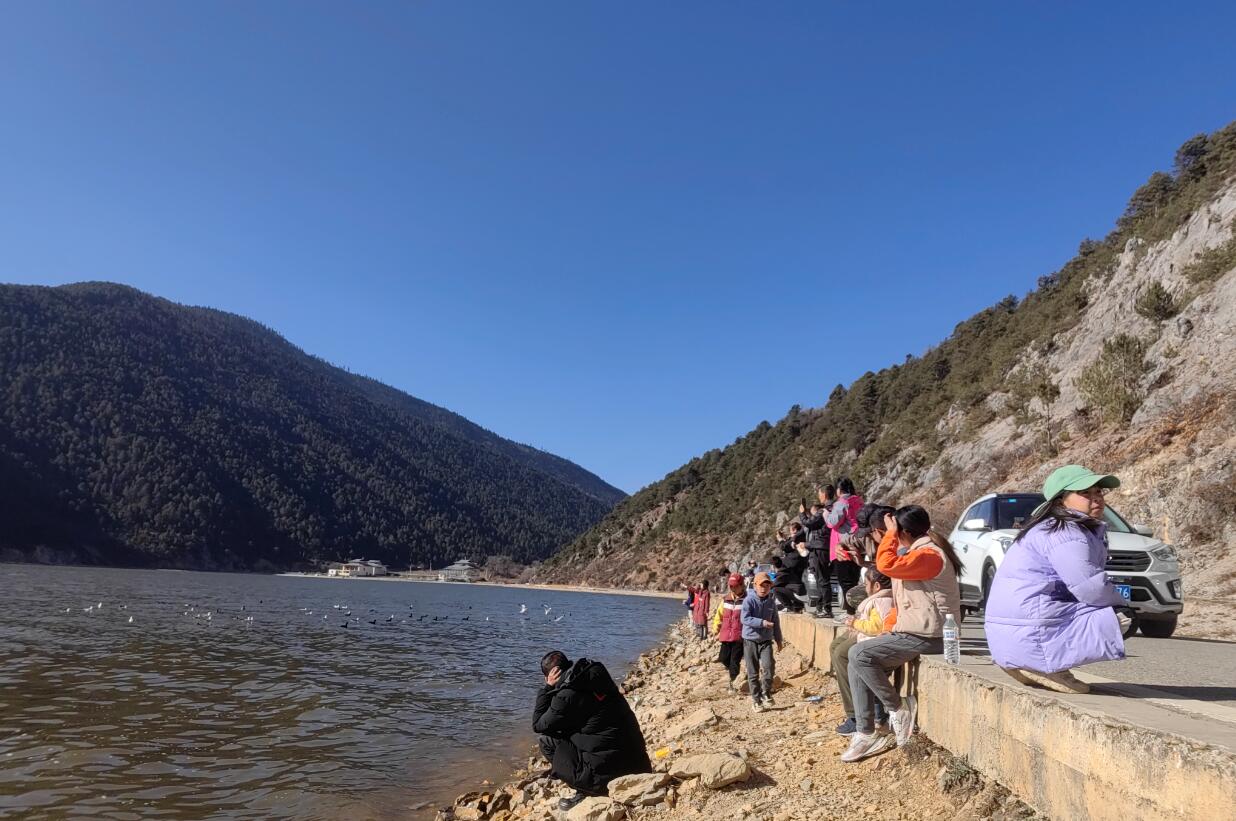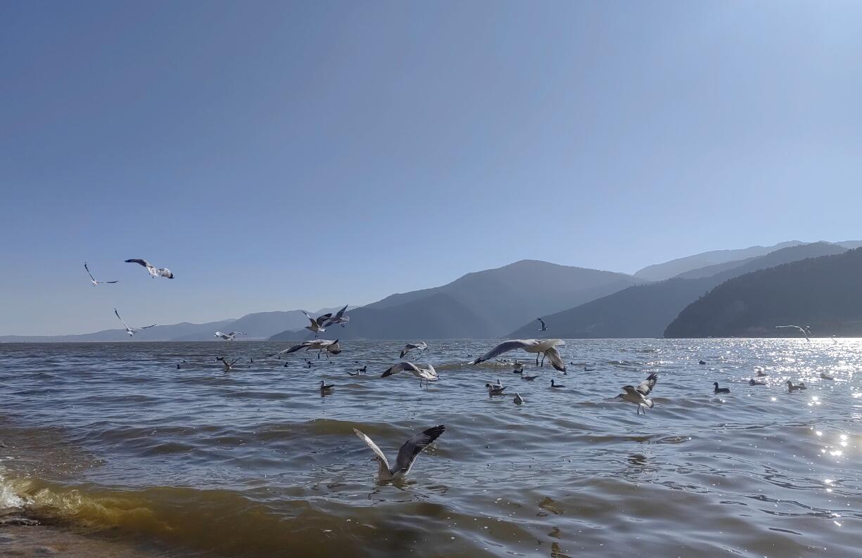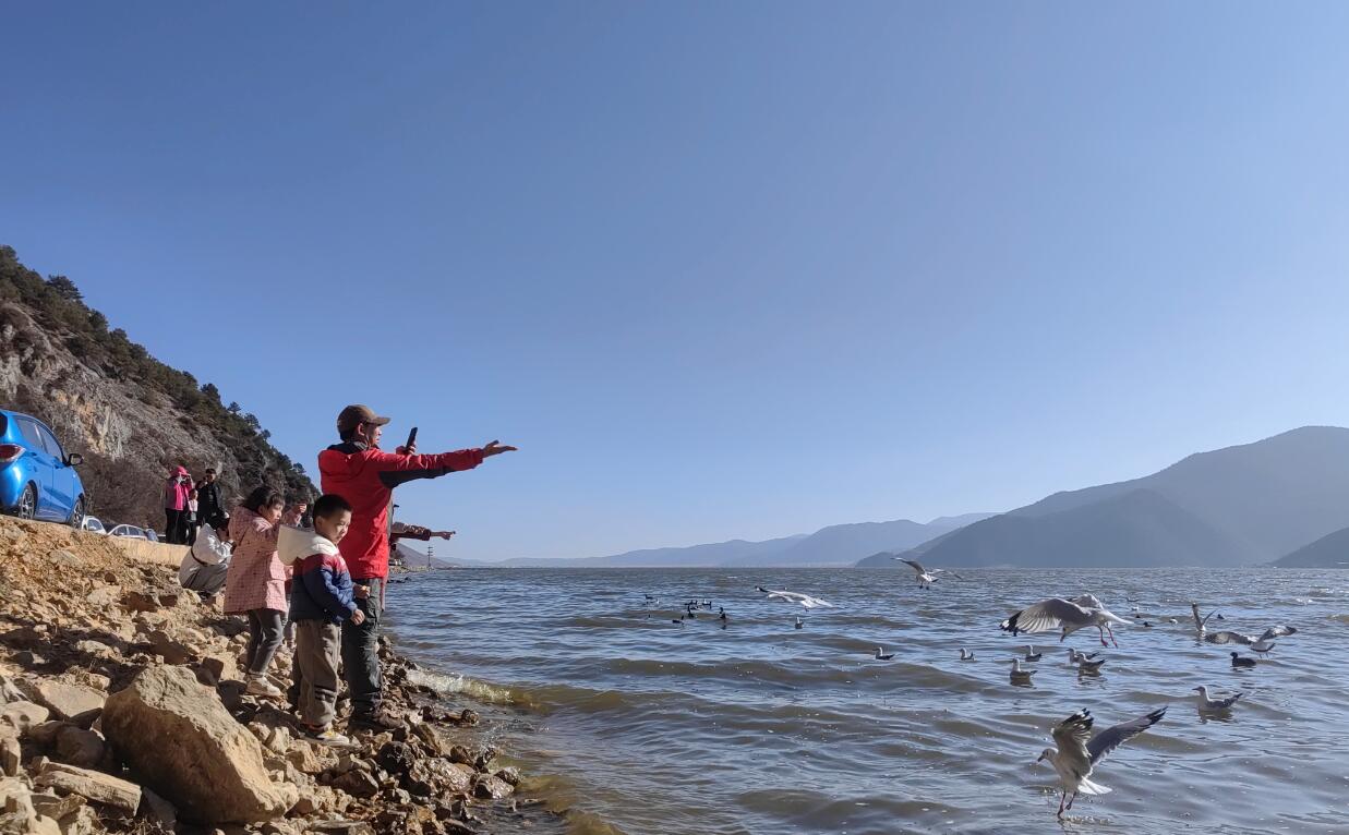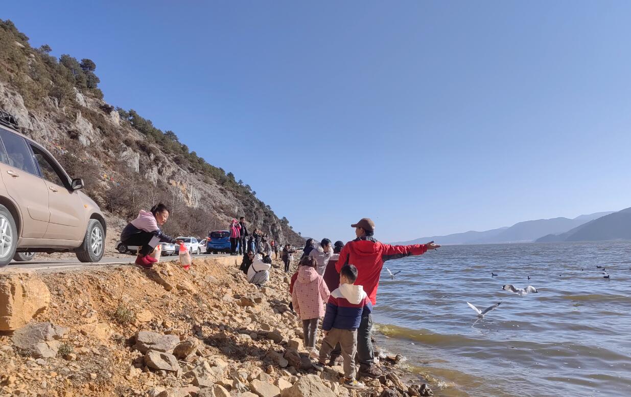 1月28日,記者在納帕海自然保護區(qū)看到成群的海鷗在這里盤旋飛舞,不少游客手托面包進行投喂,一幅幅人與自然和諧共生的美好畫卷徐徐鋪開?!暗谝淮蝸硐愀窭锢?,看到不少游客在這里投喂海鷗,我也買一袋來試試。”游客王鑒詳說。