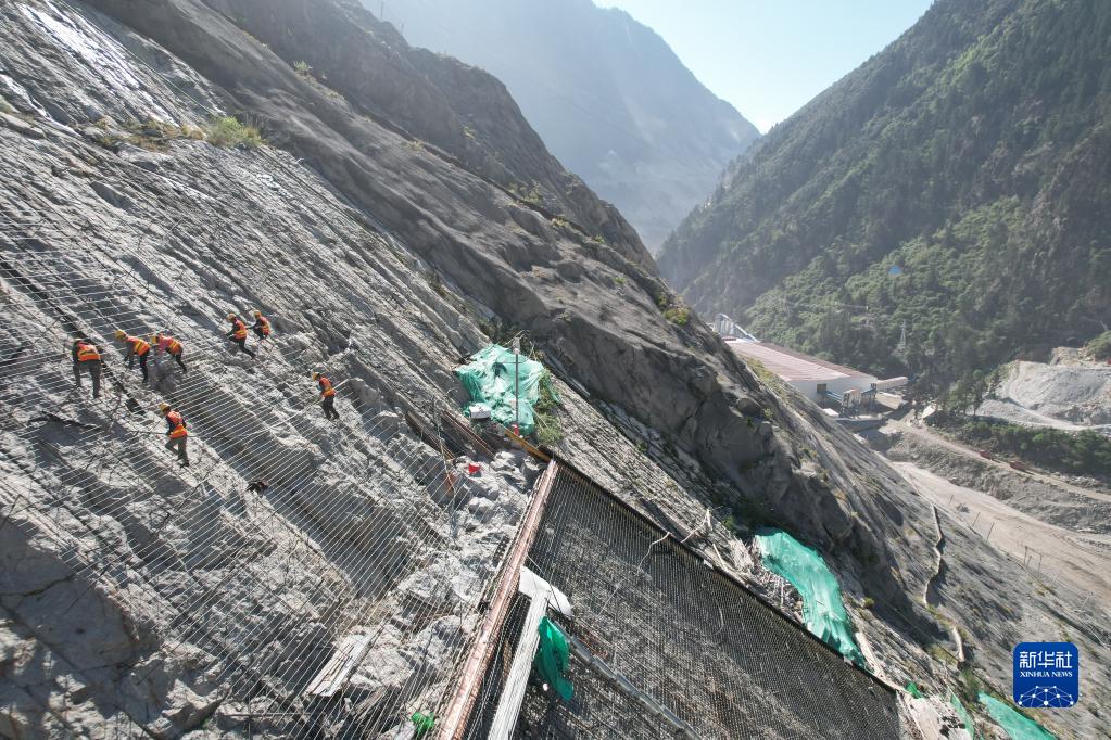 建設(shè)者奮戰(zhàn)在雙江口水電站施工一線。 新華社記者 楊進(jìn) 攝