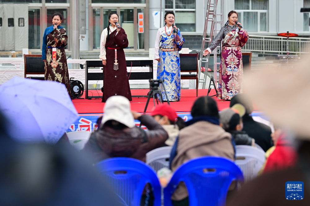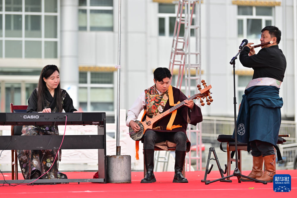 “金燦燦的光芒照亮了雪山之巔……”在藏族傳統(tǒng)樂器的伴奏下,婉轉(zhuǎn)悠揚的歌聲仿佛穿透天際,引得路邊的群眾駐足觀看。