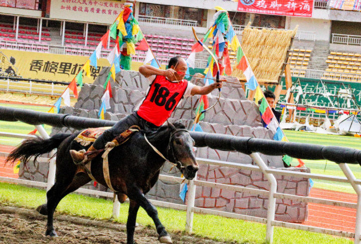 大理代表隊是此次參加跑馬拾哈達及跑馬射箭的唯一友鄰馬隊,該隊選手陸院章、余利剛在跑馬射箭項目中也獲得了第三、四名的好成績?!按罄砗偷蠎c都是云南省馬術(shù)比賽的主力,香格里拉的端午賽馬節(jié)我們每年都來參加,大理的三月街賽馬大會迪慶隊也不會缺席,多年來我們相互交流馬術(shù),結(jié)下了深厚的友誼,雖然此次我們沒有獲得最好的成績,但三年未能來香格里拉端午賽馬節(jié)的遺憾補上了,能夠再續(xù)雙方民族、區(qū)域之間割不斷的情誼,很值得!”大理代表隊領(lǐng)隊余利邦表示。