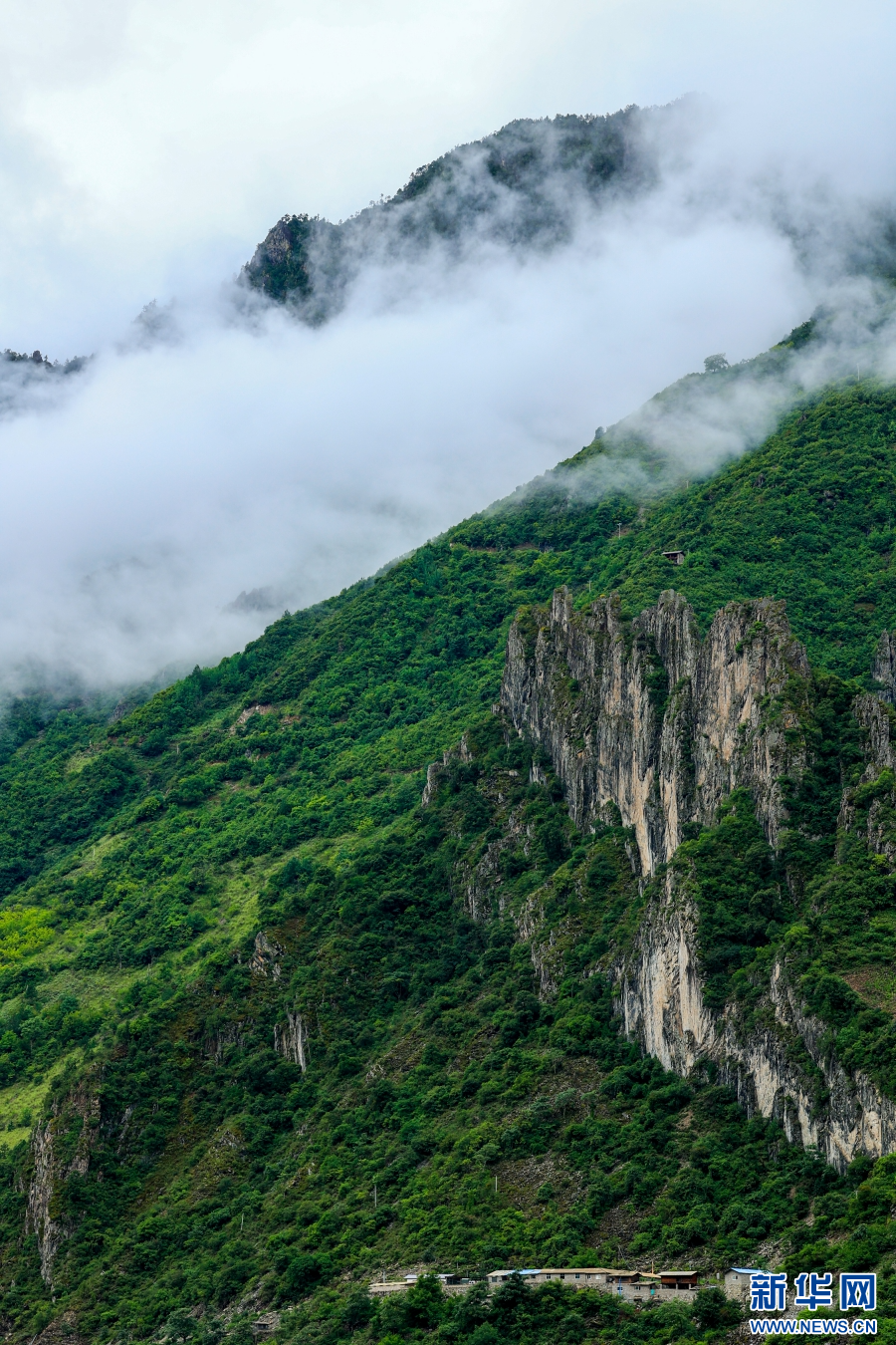 若影若現(xiàn)的村莊(7月29日攝)。新華網(wǎng) 趙普凡 攝