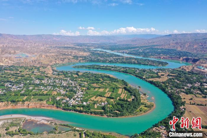 8月7日,航拍流經(jīng)青海省黃南藏族自治州尖扎縣境內(nèi)的黃河美景。地處青藏高原黃河谷地的尖扎縣,盛夏時(shí)節(jié),黃河岸畔綠意蔥蘢,河水清澈碧綠,與藍(lán)天白云構(gòu)成一幅幅夏日田園畫卷。