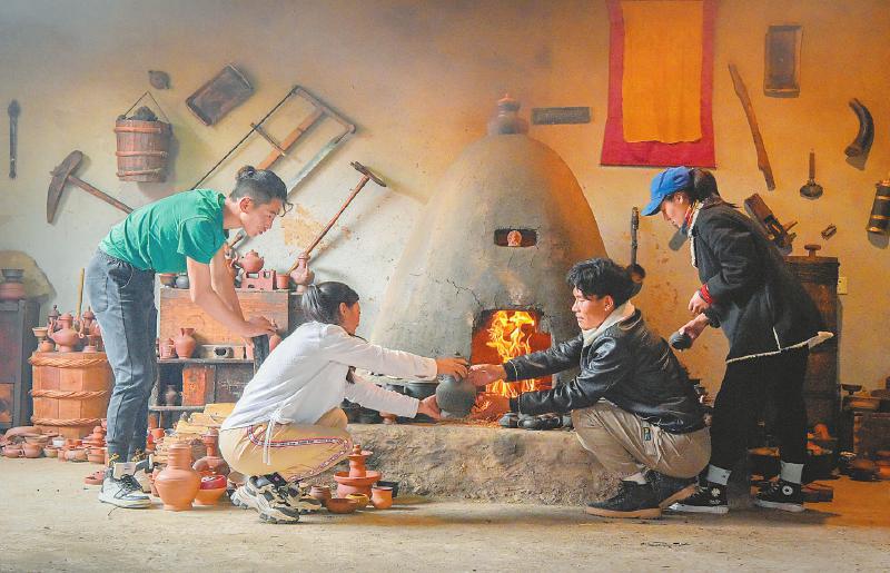 壤塘縣藏式陶藝傳習(xí)所的學(xué)員在制作黑陶。羅讓東周 攝