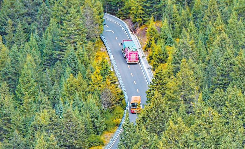 9月的壤塘縣,一條條寬敞的水泥路鑲嵌在青山綠水間,勾勒出一幅“車在路上走,人在畫中游”的美麗畫卷。