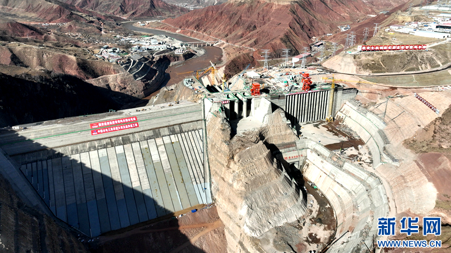 黃河流域在建海拔最高、裝機(jī)最大的水電站瑪爾擋水電站下閘蓄水