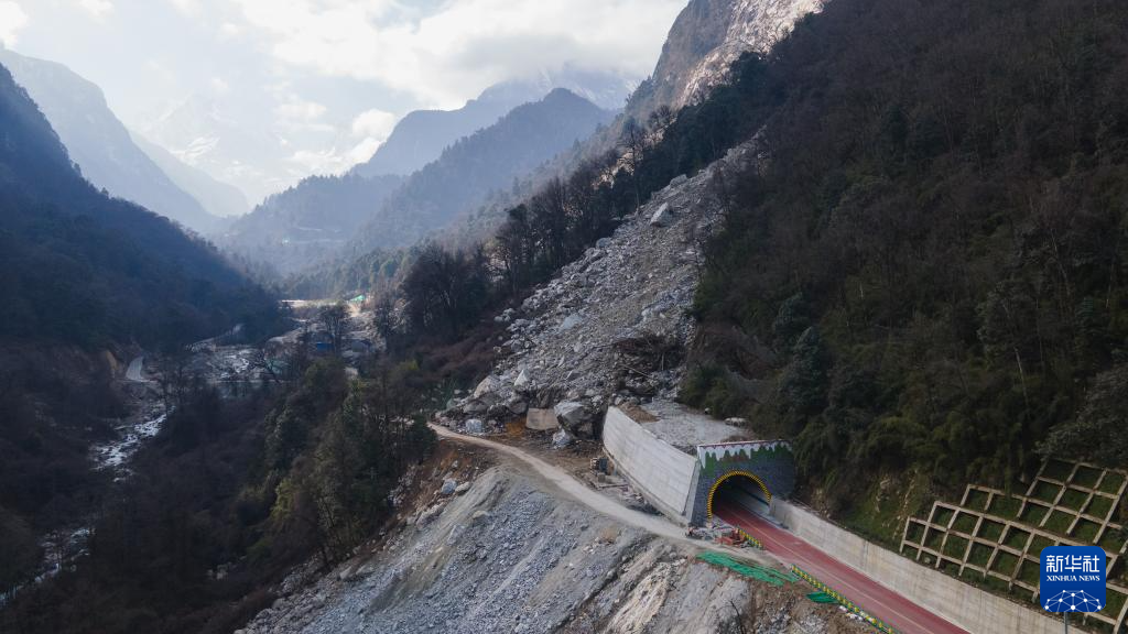 這是1月10日拍攝的海螺溝景區(qū)公路上一處新建的隧道(無人機(jī)照片)。景區(qū)重建時,避開地質(zhì)災(zāi)害點新建了4個隧道,抗災(zāi)能力得到提升且縮短了通往景區(qū)的時間。新華社記者 胥冰潔 攝