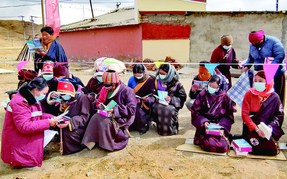 尼瑪拉毛(左)入村為牧民講解健康知識。 本文圖片由尼瑪拉毛提供