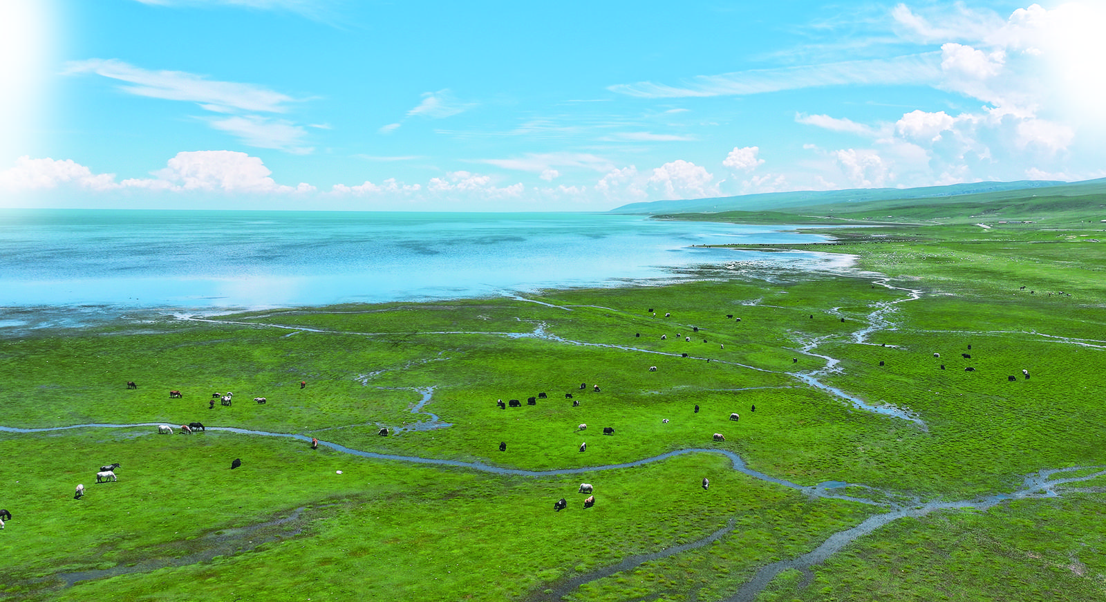 盛夏時(shí)節(jié),漫步在青海湖畔,藍(lán)天、雪山、草原、湖泊勾勒出一幅和美的生態(tài)畫(huà)卷。