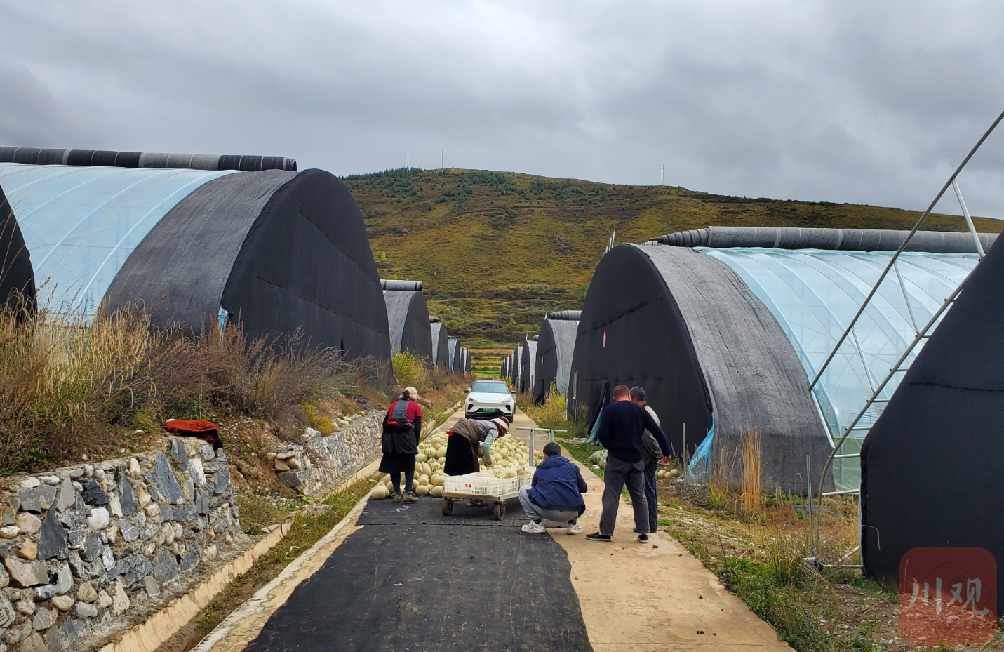 10月24日,位于阿壩州松潘縣川主寺鎮(zhèn)的松潘高原現(xiàn)代農(nóng)業(yè)產(chǎn)業(yè)園區(qū)內(nèi),豐收的高原網(wǎng)紋瓜進(jìn)入采摘期。
