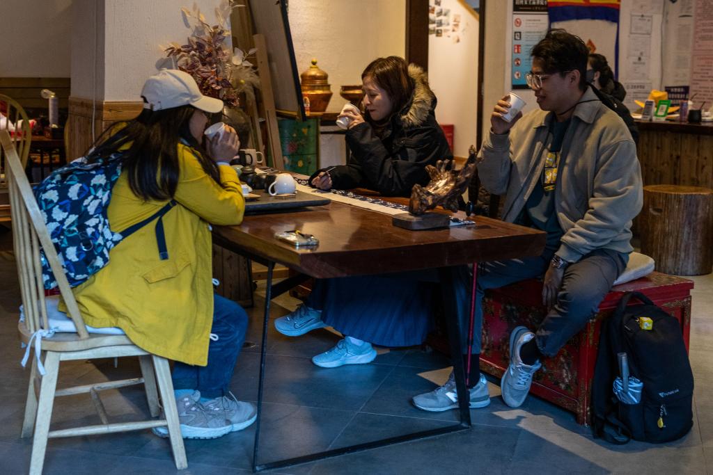10月31日,在四川省甘孜藏族自治州稻城亞丁景區(qū)內(nèi)的亞丁村,游客在一家民宿休息。新華社記者 儲(chǔ)加音 攝