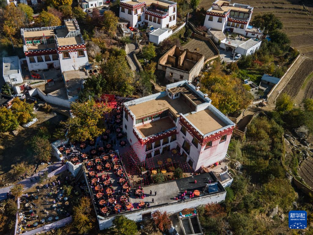 這是11月2日在仲德村拍攝的一場婚禮現(xiàn)場(無人機照片)。新華社記者 儲加音 攝