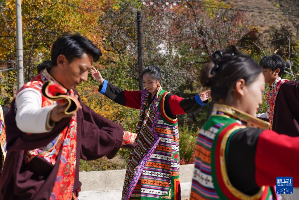 11月2日,舞蹈演員在仲德村表演鄉(xiāng)城鍋莊舞。新華社記者 儲加音 攝