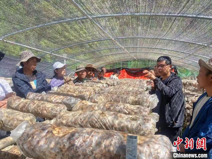 8月20日,技術(shù)人員在四川省阿壩州壤塘縣一處食用菌種植大棚內(nèi),為村民培訓(xùn)種植技術(shù)。(壤塘縣委宣傳部供圖)
