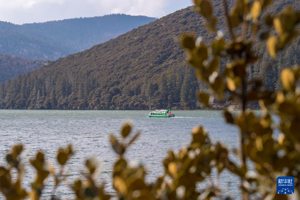 2月23日,游客在普達(dá)措景區(qū)乘坐游船觀光。新華社 彭奕凱 攝