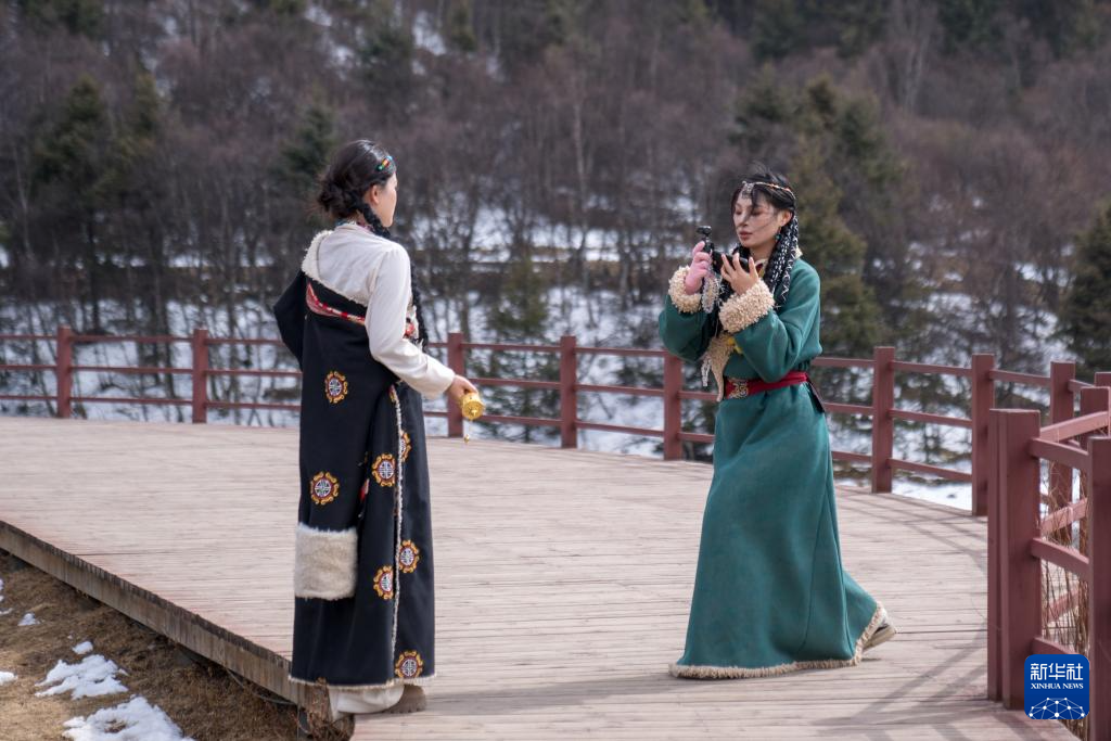 2月23日,游客在普達(dá)措景區(qū)拍照。新華社 彭奕凱 攝