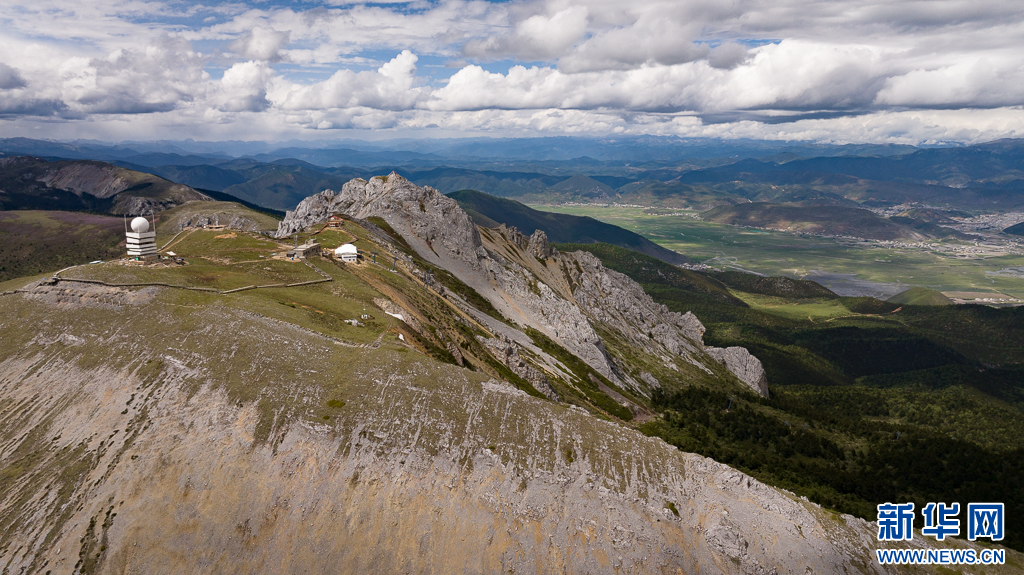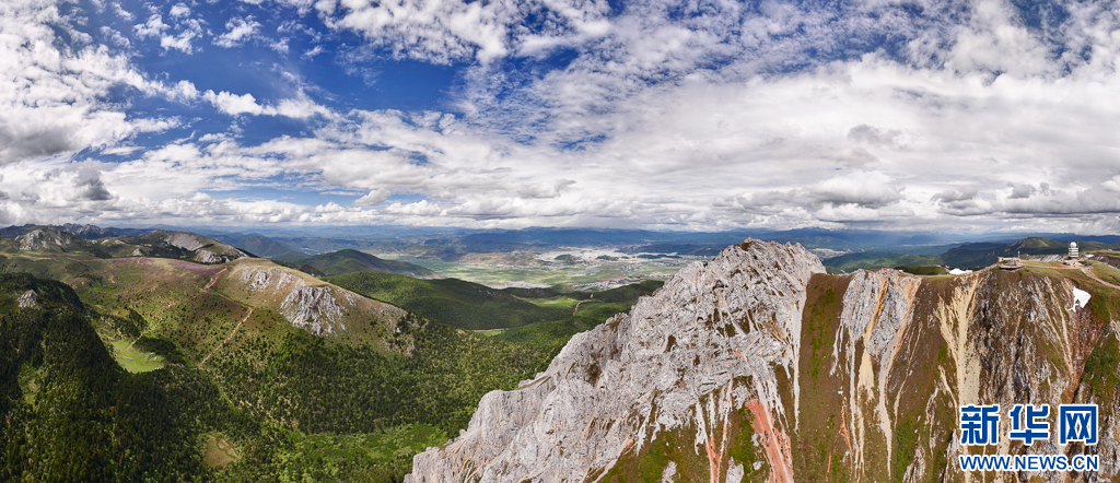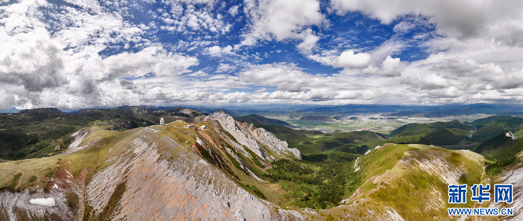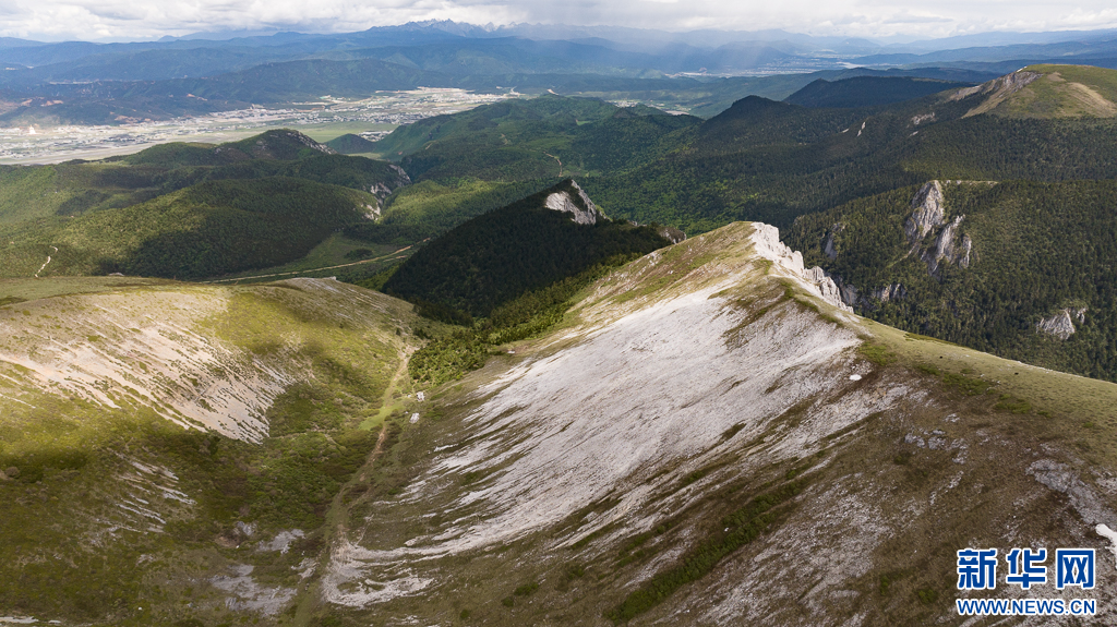 石卡雪山與遠(yuǎn)處的納帕海、香格里拉市區(qū)(6月10日攝)。新華網(wǎng) 劉東 攝