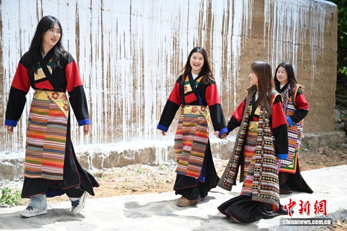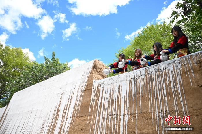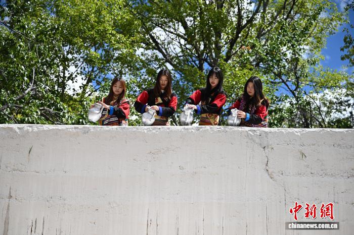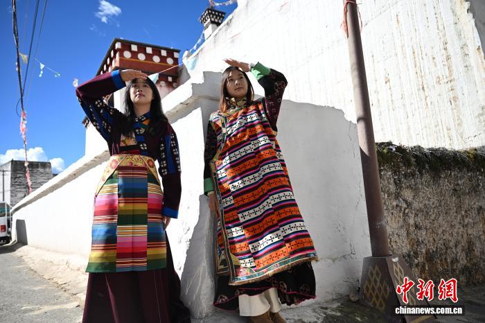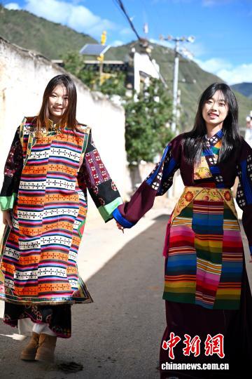 9月21日,四川省甘孜州鄉(xiāng)城縣青德鎮(zhèn),一些游客穿上藏族女性特有的傳統(tǒng)禮服“瘋裝”,在白藏房前體驗(yàn)“白色灌禮”習(xí)俗,感受川西小城鄉(xiāng)城縣獨(dú)有的文化魅力。