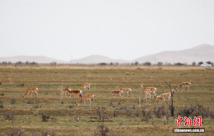 資料圖為成群普氏原羚在青海省海北藏族自治州剛察縣哈爾蓋鎮(zhèn)境內的草原上漫步。馬銘言 攝