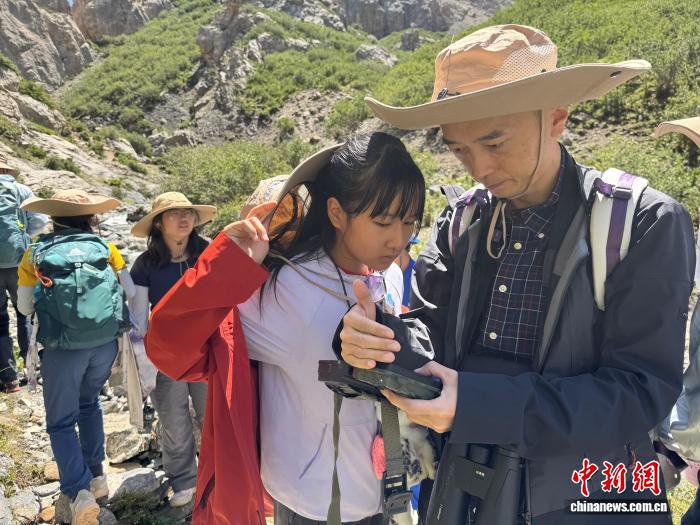 不遠處的山坡上,牧民文華加的帳篷倚山而建,高山深谷中有雪豹出沒。生態(tài)訪客們穿越茂密灌叢、跋涉亂石淺灘,尋找實踐站志愿者布設在山體巖壁間的紅外相機,收集“高山之王”雪豹行蹤。
