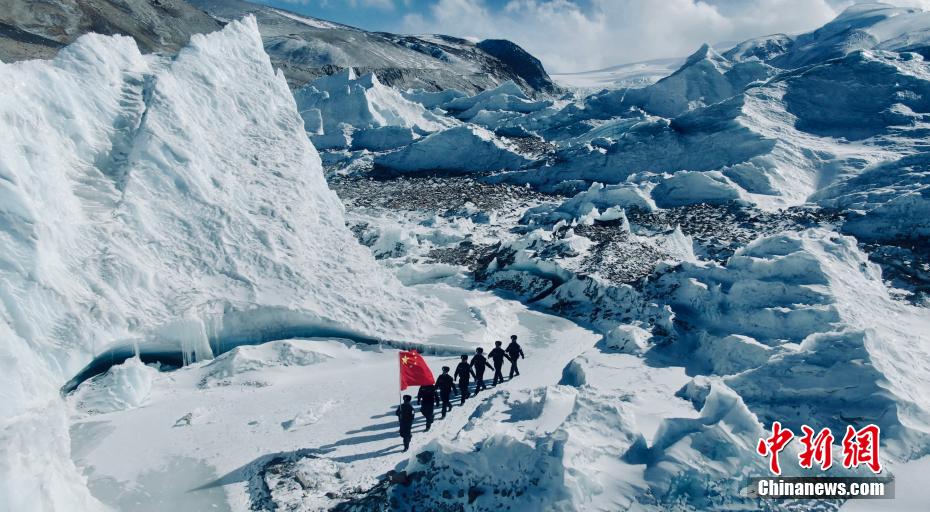 又是一年新春到,在舉國歡慶、闔家團(tuán)圓的時(shí)刻,駐守在平均海拔5373米的全國海拔最高行政鄉(xiāng)——普瑪江塘鄉(xiāng)的邊境派出所移民管理警察,在平均氣溫近零下30℃的邊境冰川一帶開展例行巡邏,確保節(jié)日期間祖國邊境地區(qū)安全穩(wěn)定。圖為普瑪江塘邊境派出所移民管理警察在邊境冰川開展巡邏。 徐道超 攝
