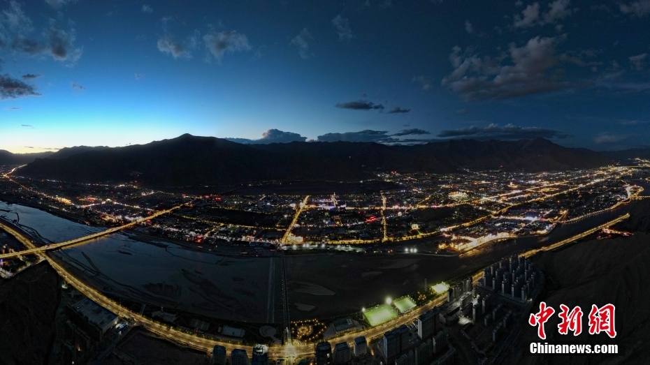 資料圖為2020年6月10日,拉薩城市入夜,燈光點(diǎn)亮高原古城夜色。(無(wú)人機(jī)畫(huà)面) 中新社記者 江飛波 攝