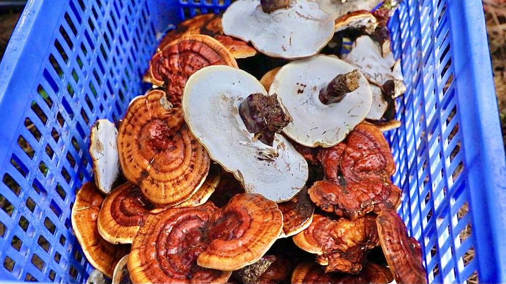 走進西藏自治區(qū)林芝市米林縣米林鎮(zhèn)雪卡村紅太陽科技示范家庭農(nóng)場試驗區(qū),映入眼簾的是一排排破土而出的林下仿野生靈芝,它們一簇簇、一朵朵鉚足了勁兒往上長,長勢甚是喜人,連日來,村民正在樹林里采摘生長成熟的靈芝。