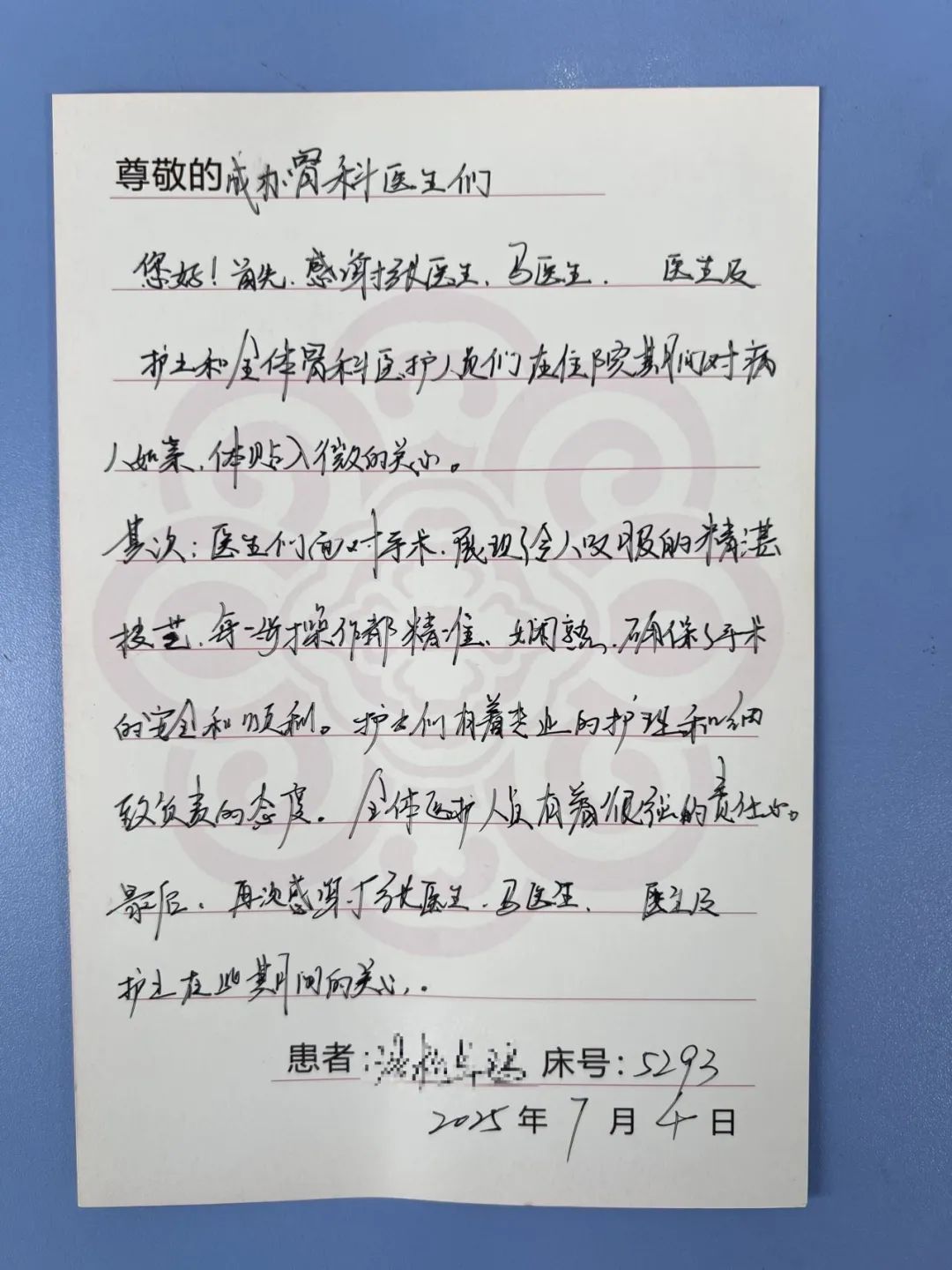 術(shù)后卓瑪阿媽恢復(fù)迅速,第二天就能下地自行活動(dòng)。卓瑪阿媽及家屬對(duì)治療效果非常滿(mǎn)意,特意手書(shū)感謝信。