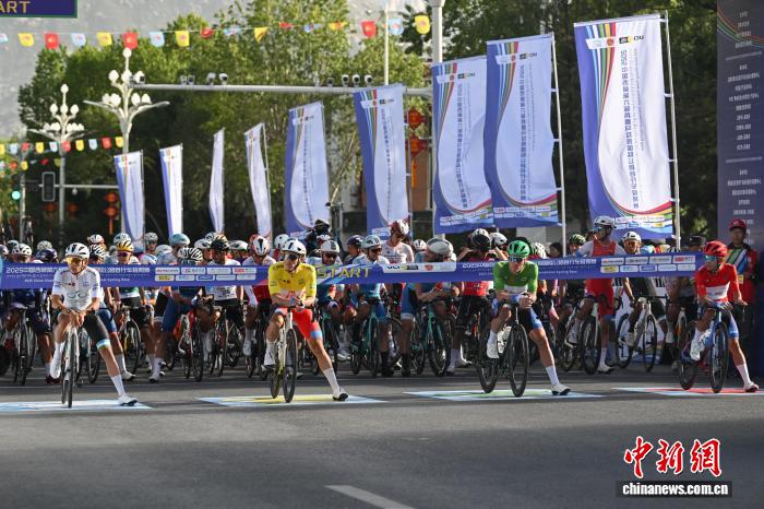 8月9日,2025中國西藏第六屆跨喜馬拉雅國際公路自行車極限賽拉薩賽段(第三賽段)完賽。本賽段為拉薩繞圈賽,起點(diǎn)拉薩市西藏博物館,終點(diǎn)布達(dá)拉宮廣場(chǎng),全程約92.53公里。圖為參賽車手在比賽中。中新社記者 貢嘎來松 攝