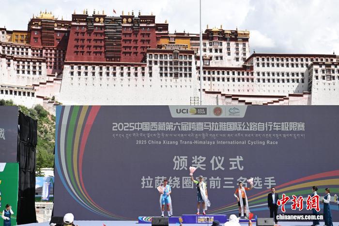 8月9日,2025中國西藏第六屆跨喜馬拉雅國際公路自行車極限賽拉薩賽段(第三賽段)完賽。本賽段為拉薩繞圈賽,起點(diǎn)拉薩市西藏博物館,終點(diǎn)布達(dá)拉宮廣場(chǎng),全程約92.53公里。比賽吸引了來自中國、西班牙、哈薩克斯坦等20余支車隊(duì)。圖為斯優(yōu)泰-梵蒂尼職業(yè)隊(duì) RAJOVIC Dusan(中)、快客洲際隊(duì) LAAS Martin(左)、巴斯克電信職業(yè)隊(duì) ABERASTURI IZAGA Jon(右)分別獲得本賽段第一、二、三名。中新社記者 貢嘎來松 攝