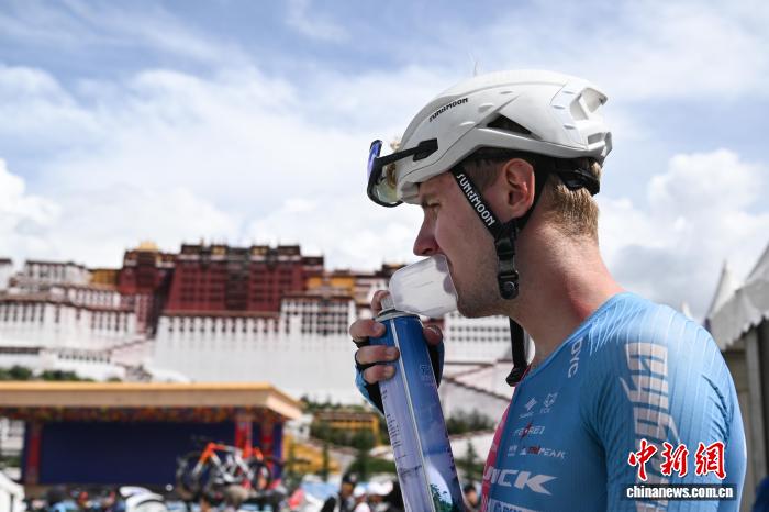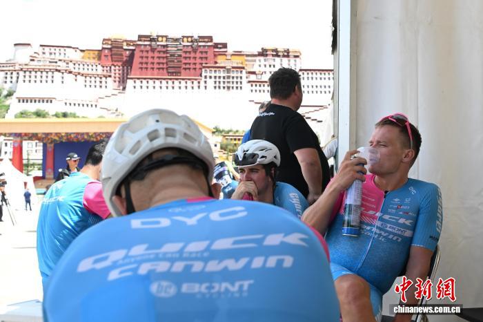 圖為完賽后參賽車手在布達(dá)拉宮廣場(chǎng)吸氧。中新社記者 貢嘎來松 攝